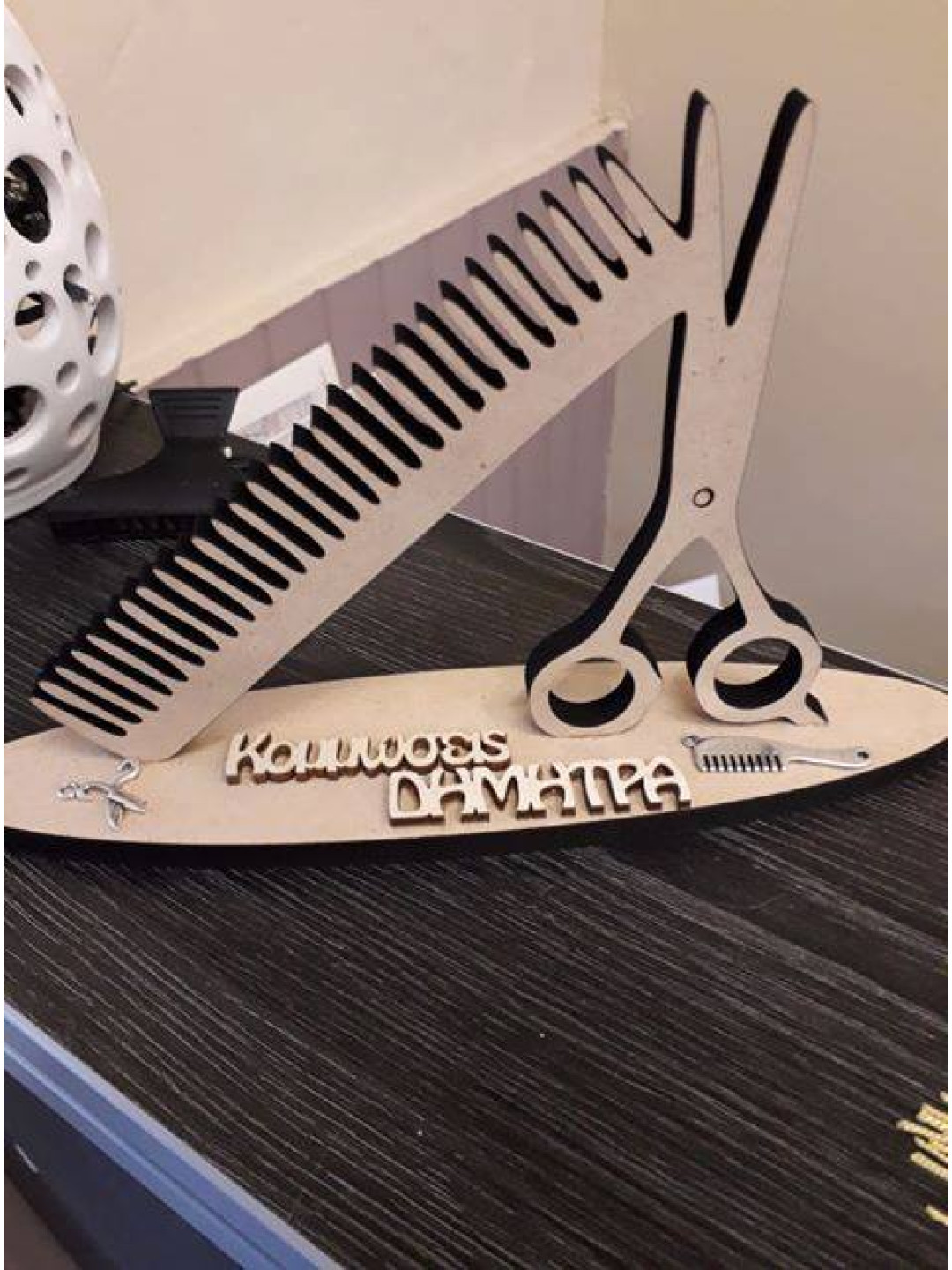Υπέροχο πρωτότυπο καλοφτιαγμένο διακοσμητικό χτένα ψαλίδι για την επιχείρηση σας, με την δική σας επωνυμία επάνω στη βάση . Για κομμωτή,κομμώτρια ,Barbers Δυνατότητα να γίνει χάραξη στην χτένα κάποιο μικρό μήνυμα Η μέθοδος της αντικαταβολής δεν ισχύει για ειδικές παραγγελίες ή παραγγελίας προσωποποιημένου προϊόντος. ΤΟ ΠΡΟΙΟΝ ΑΥΤΟ ΔΕΝ ΑΠΟΣΤΕΛΛΕΤΑΙ ΜΕ ΑΝΤΙΚΑΤΑΒΟΛΗ |