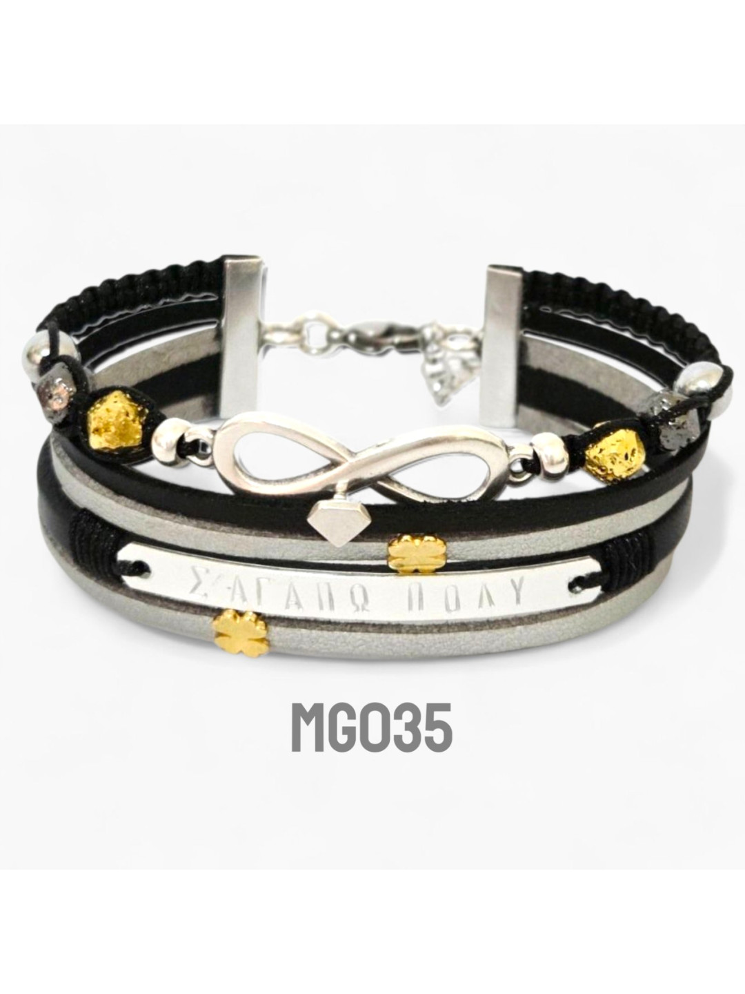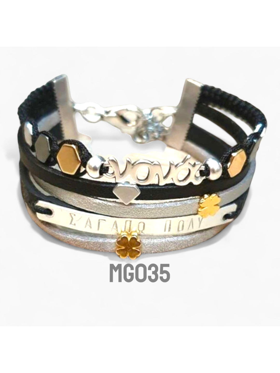 χειροποίητο βραχιόλι two tone με χάραξη MG035