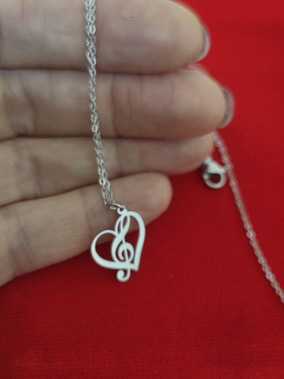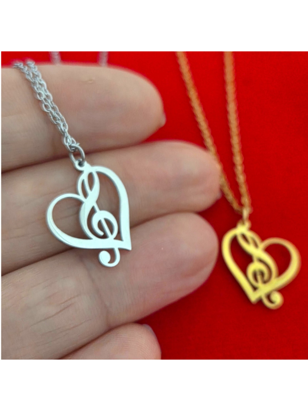 Κολιέ ατσάλι καρδιά με κλειδί του sol VD2503