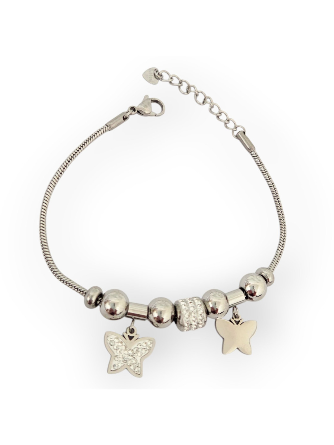 Βραχιόλι ατσάλι πεταλούδα ασημί VD2602