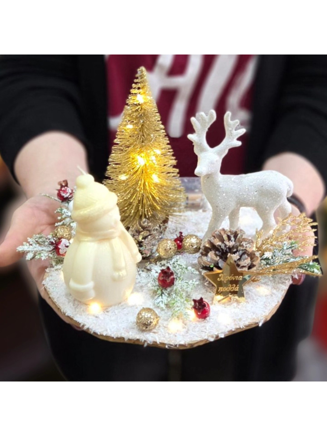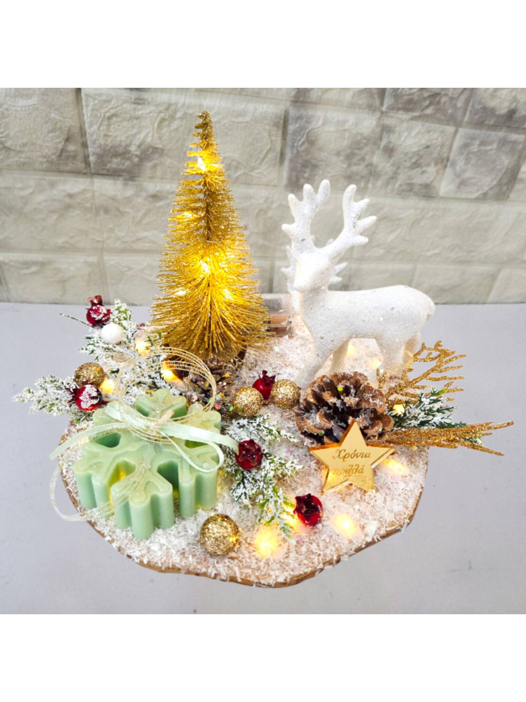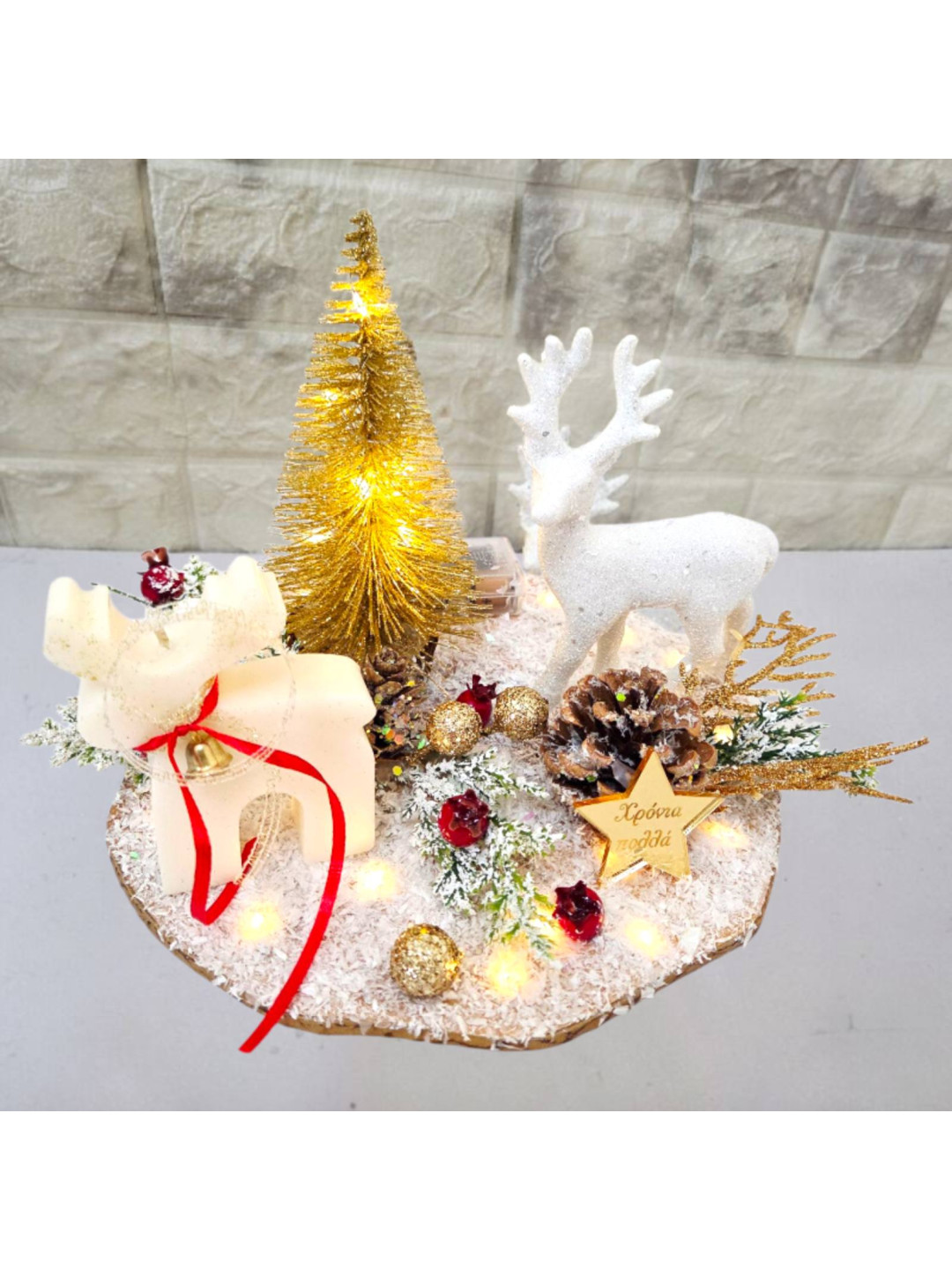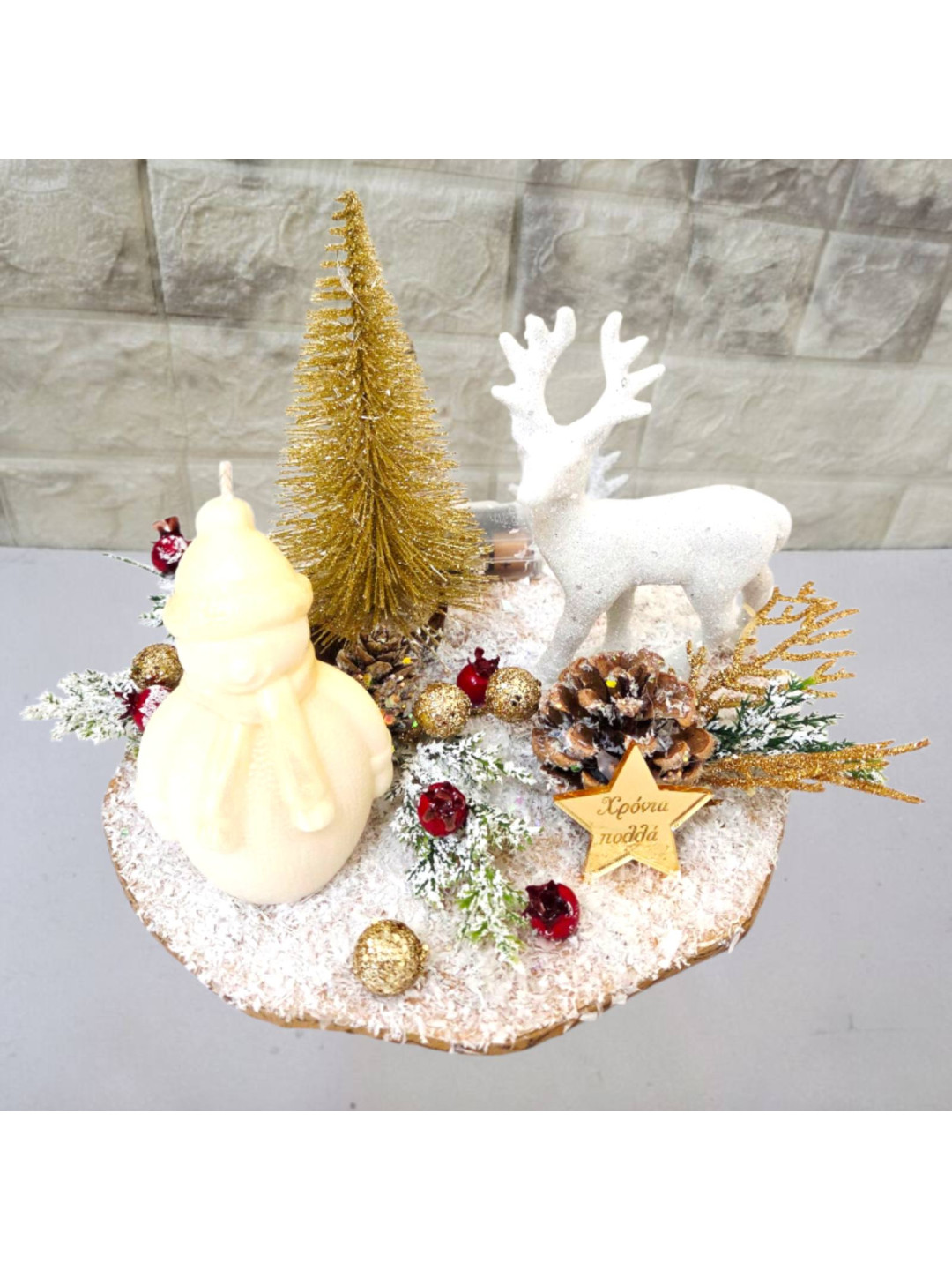 Χριστουγεννιάτικη χειροποίητη σύνθεση με φωτισμό led, αρωματικό κερί, χιονάνθρωπο ,τάρανδο,χιονονιφάδα XMAS2618