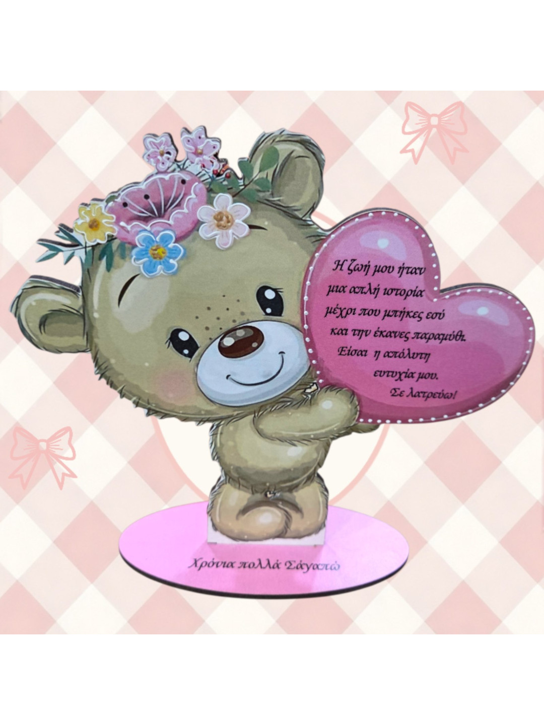 Ξύλινο Αρκουδάκι Αγάπης με Προσωποποιημένο Μήνυμα LV2604