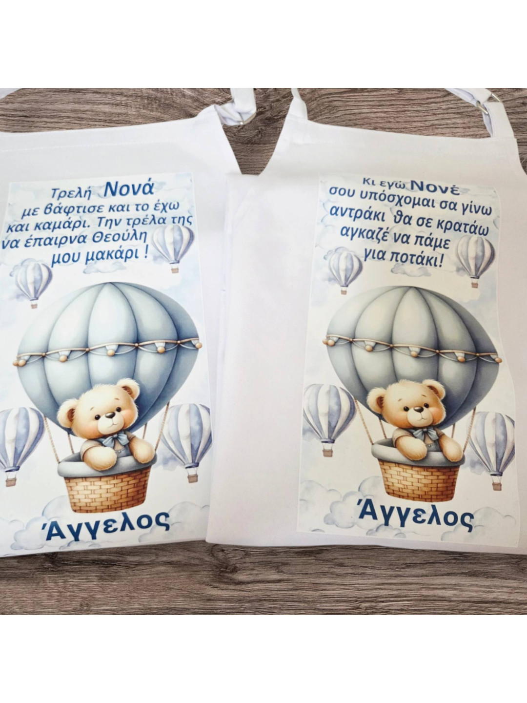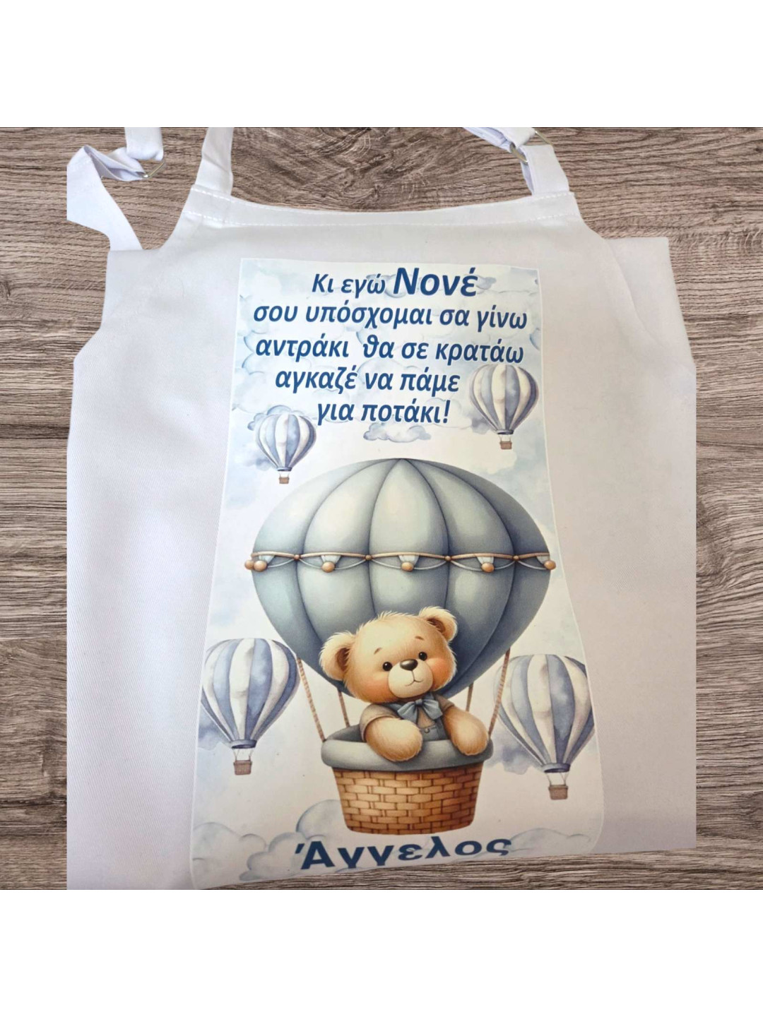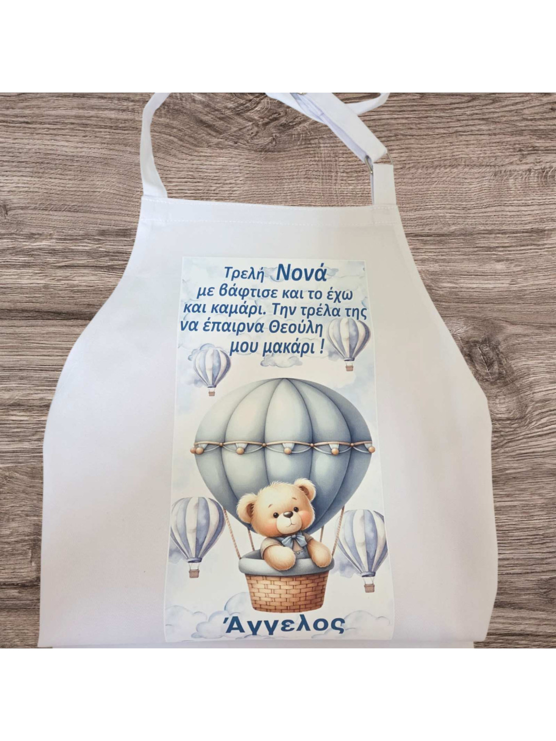Ποδιά βάπτισης αρκουδάκι με αερόστατο PDB2604