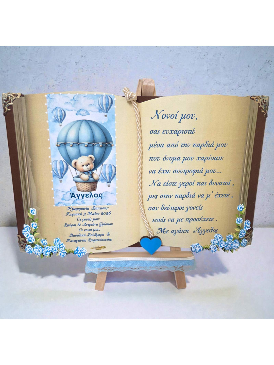 Αναμνηστικό καδράκι αρκουδάκι με αερόστατο AK931
