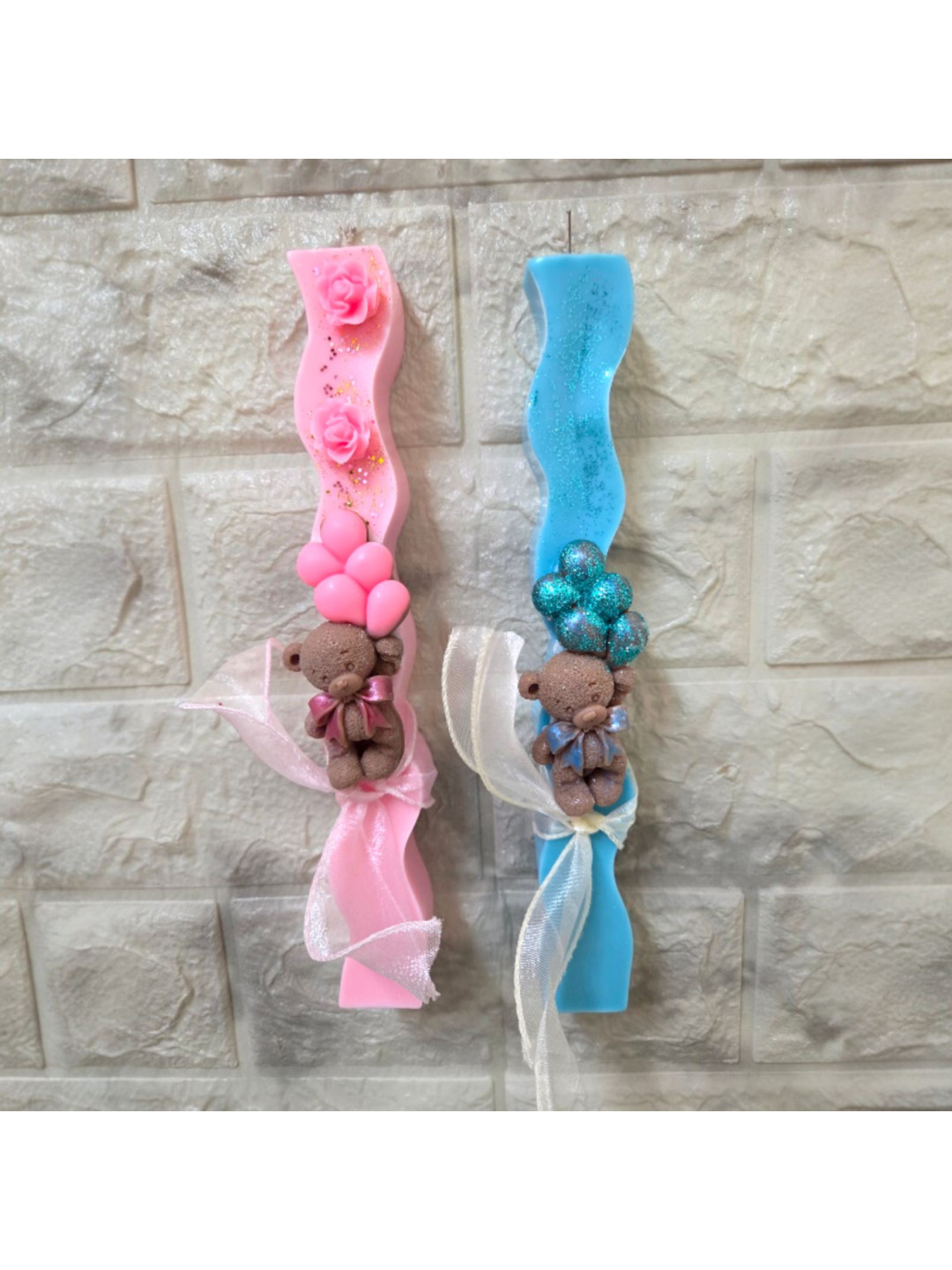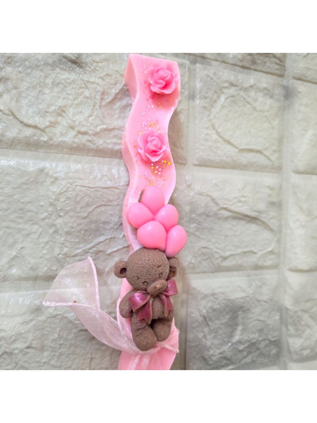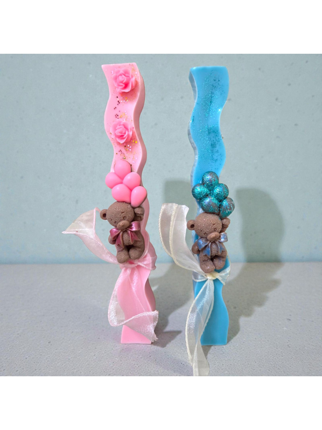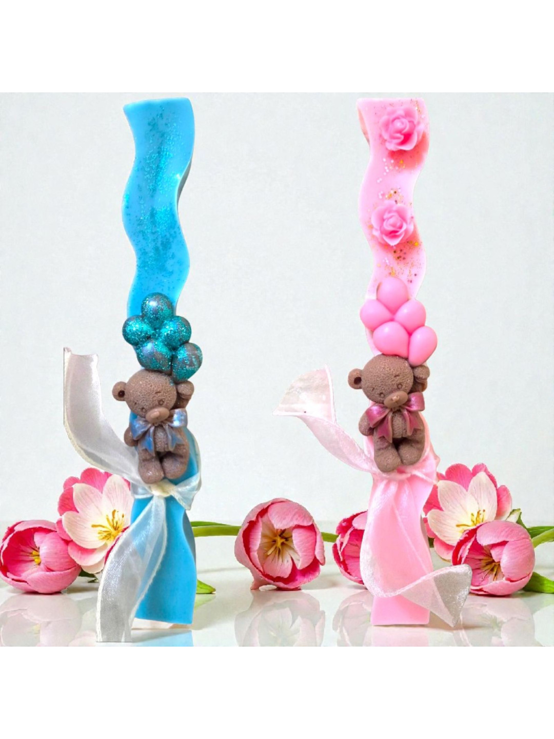 Χειροποίητη Αρωματική βρεφική Λαμπάδα με τριασδιάστα αρκουδάκια & Μπαλόνια LM2615