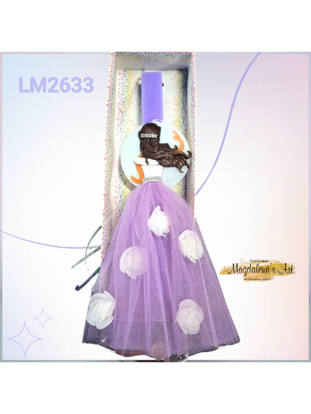 Λαμπάδα Πασχαλιά Κοπέλα με Λιλά φόρεμα LM2633