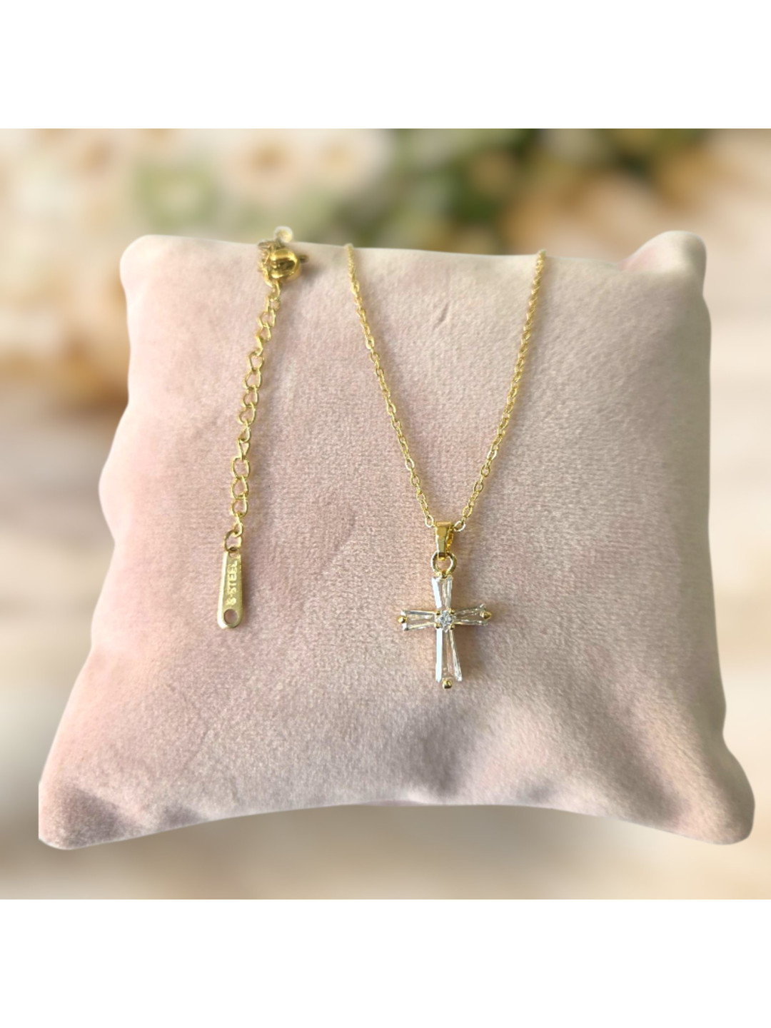 Το κολιέ με σταυρουδάκι κρυστάλλου από ανοξείδωτο ατσάλι είναι το ιδανικό αξεσουάρ για κάθε στιγμή. Ο μίνιμαλ σχεδιασμός του με την κρυστάλλινη λεπτομέρεια χαρίζει λάμψη χωρίς υπερβολές, ενώ το διακριτικό του μέγεθος το κάνει ιδανικό για να φορεθεί μόνο του ή σε layering με άλλα κολιέ.
