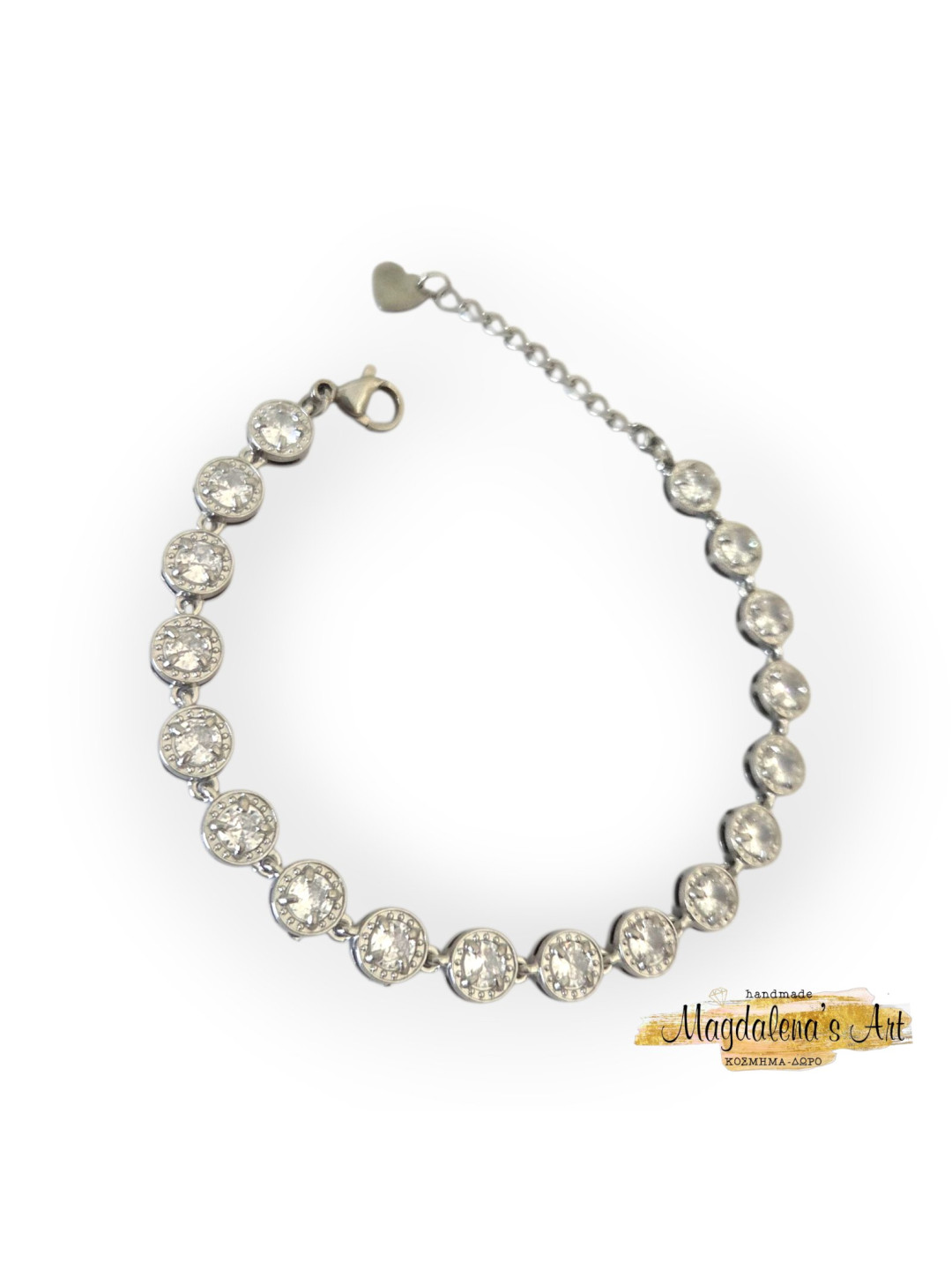 Ατσάλινο Βραχιόλι με Ζιργκόν –ασημί ss2602