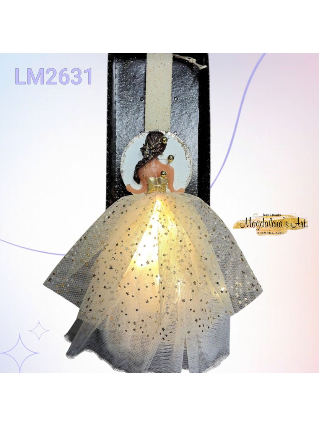 Λαμπάδα Κοπέλα με ιβουάρ φόρεμα με LED LM2632