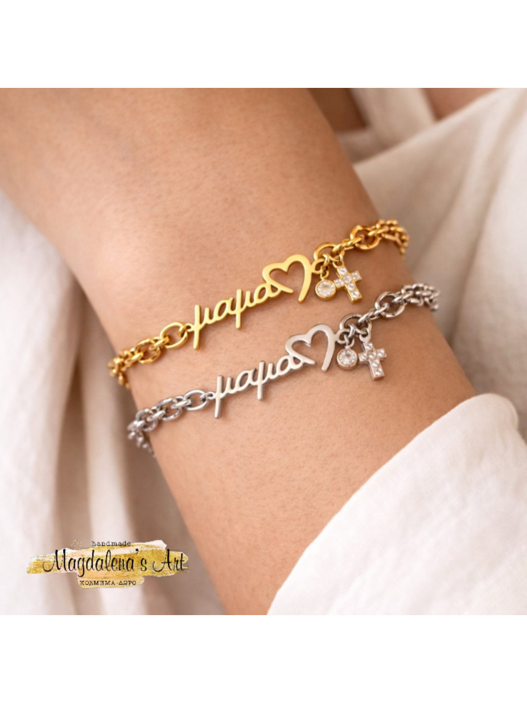 ✔ Στοιχεία: “μαμά”, καρδιά & σταυρός