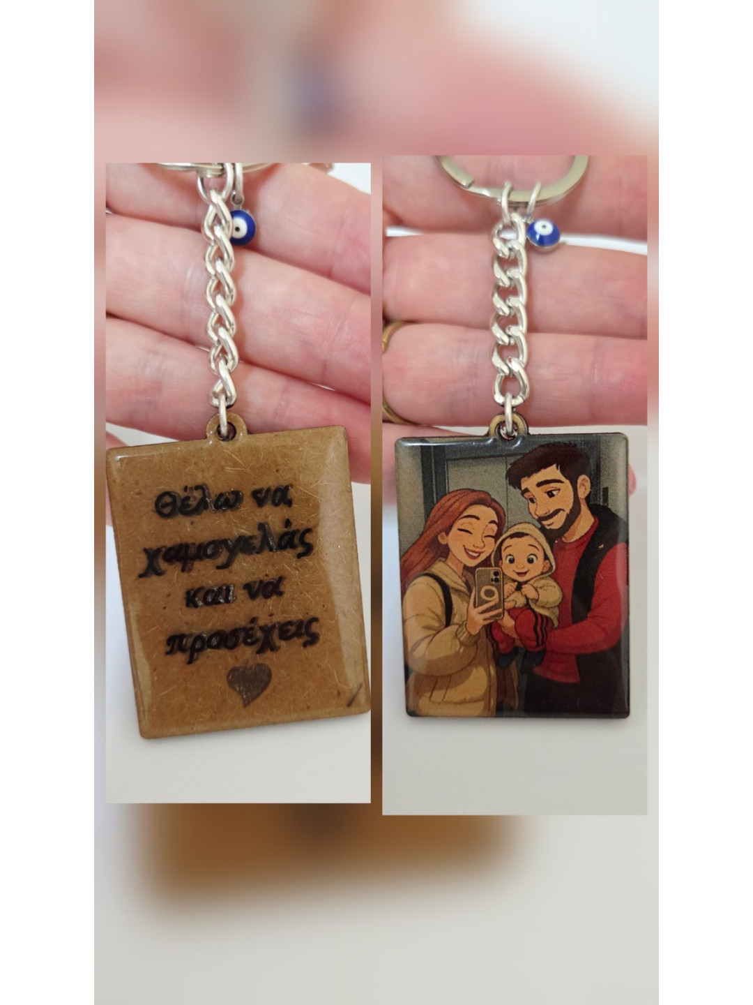 Κάθε μπρελόκ φινίρεται με υγρό γυαλί για μεγαλύτερη αντοχή στον χρόνο και λαμπερό, ποιοτικό αποτέλεσμα. Ένα δώρο που συνδυάζει προσωπικότητα, συναίσθημα και στυλ!